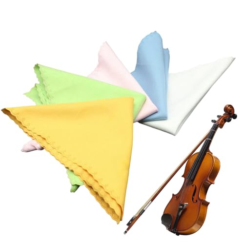 クリーニングマイクロファイバークロス5枚セット。バイオリン、ギター、管楽器のメンテナンスに最適。再利用可能で帯電防止機能付き。