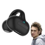 クリップオンイヤホン、Bluetooth 5.3対応、防水仕様。15時間再生のHDステレオオーディオ、スポーツ向けオーバーイヤータイプ、内蔵マイク付き。