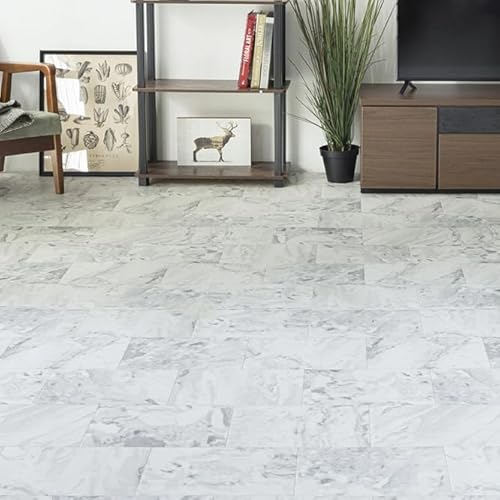 / UTOPIE ユトピー 大理石柄クッションフロア 置くだけ 賃貸OK 床材 フローリングマット 床タイル 吸着 貼ってはがせる 接着剤不要 敷くだけ 床 DIY リフォーム 模様替え 簡単 おしゃれ 置き敷きタイプ (ホワイトマーブル, 江戸間約2畳サイズ)
