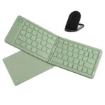 折り畳み式ワイヤレスBluetoothキーボード。3デバイス同時接続可能で超薄型設計。60時間の連続使用が可能、210mAhバッテリー搭載。スマホ・タブレット対応で静音タイピング。サイズ14.4×9.7cm。ビジネスや旅行に最適。
