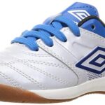 [アンブロ] アクセレイタ- TR JR WIDE INは、ジュニア向けに設計されたサッカーシューズです。幅広設計で快適なフィット感を提供し、インドアコートに最適なグリップ力を発揮します。