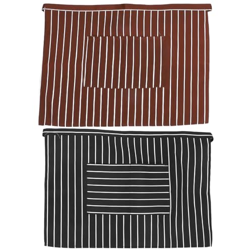 VILLCASE 2PCS サーバーウエストエプロンは、ストライププリントデザインで、ポケットが2つ付きます。サイズは60x43cmで、ウェイトレスやシェフに最適なハーフショートエプロンです。