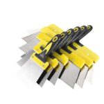 パテベラしなるヘラ6点セットは、ステンレス製で様々なサイズ(9.7/15.5/19.5/24/29.5/34.5cm)を提供。滑り止め機能を備え、プロ仕様の仕上げ用工具として内装や補修作業に最適です。