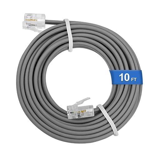 Uvital 電話延長線コードは、10フィートの長さでグレー色、RJ11 6P4C接続に対応。固定電話やファックス機に最適です。