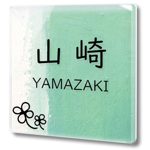 クリアアクリル製の表札で、彫刻文字が美しい油彩キャンパス風デザイン。正方形で軽量、マンションや戸建てに最適。選べる文字カラーで個性を演出。玄関や会社、住所表示にも便利。貼るだけの簡単設置で屋外使用可能。