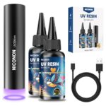 NICONONの瞬間接着剤2本セット(35g*2)は、UV接着剤で照射後約5秒で硬化。陶磁器、金属、プラスチック、アクリル、ガラスなど多用途に対応。再充電可能なUV懐中電灯(395NM)付き。