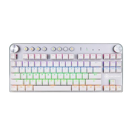 メカニカルゲーミングキーボード。USB有線およびBT3.0ワイヤレス対応。RGBバックライト、87キー。サイズは画像参照。色: ブラック。