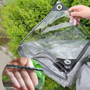 600g/㎡ 防水シート 防水透明シート 透明ビニールカーテン 透明ターポリン ハトメ付き PVC 耐引裂性 0.5 mm 透明な耐候性 雨よけシート屋外の雨よけ 防塵 保護カバー 多肉 植物 野菜カバー (2×2.5m/6.6×8.2ft)