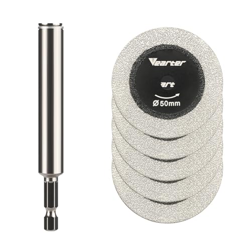 Vearter ダイヤモンドカッター 直径50mm 5枚入と6.35mm六角シャンク リューター カッター クォーツストーン、花崗岩、レンガ、大理石用 ダイヤモンドカッティングディスクミニルーター/リューター/ルーター用の製品情報