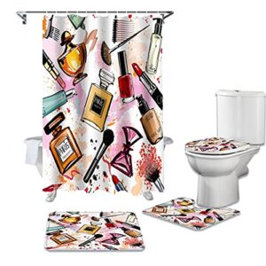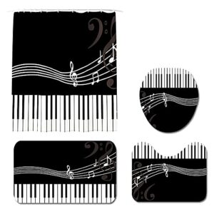 シャワーカーテン4点セットクリスマスバスルームセットバスルームトイレカーペットシャワーカーテン+バスルームマット+ U字型コンターマット+トイレカバー(Size:45X75 four-piece suit,Color:NS)