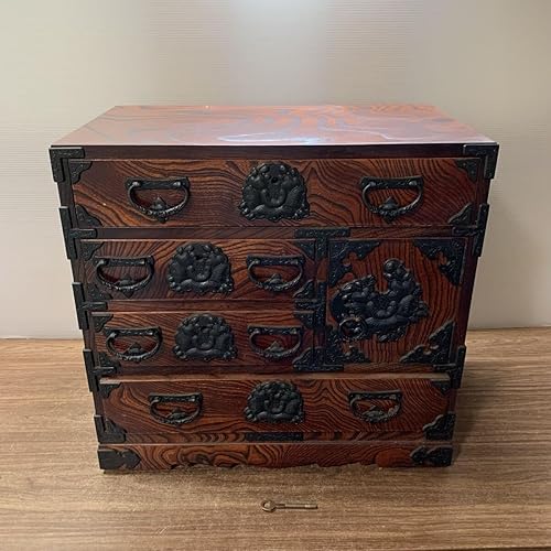 岩谷堂箪笥 菊幸作の伝統工芸チェスト。サイズは縦33×横55×高さ52cmの中型タイプ。アンティークでレトロな和家具、民芸家具として、中古品ですが魅力的な一点です。