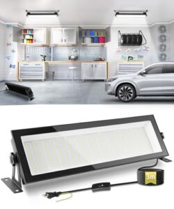 LED投光器フラッドライト120W高天井灯 作業灯 高輝度 13000lm【1200W水銀灯相当】ハイベイライト 6500K昼白色 IP66防水防塵 防寒 掲示板 体育館 展覧会 駐車場 運動場 工場照明 倉庫照明 高天井照明 屋内屋外兼用 ビーム角120度(無騒音、電磁波障害なし、防虫)【3メートルの配線付き、スイッチとプラグ付き】【PSE認証】(120W 2個)