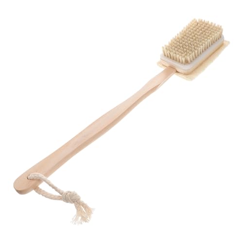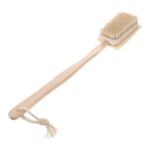 MERRYHAP木製バスブラシは、ロングハンドルで使いやすく、ダブルサイドで角質ケアやボディスクラブに最適。すべり止め設計で安定感があり、スパケアにぴったりです。