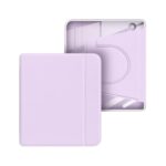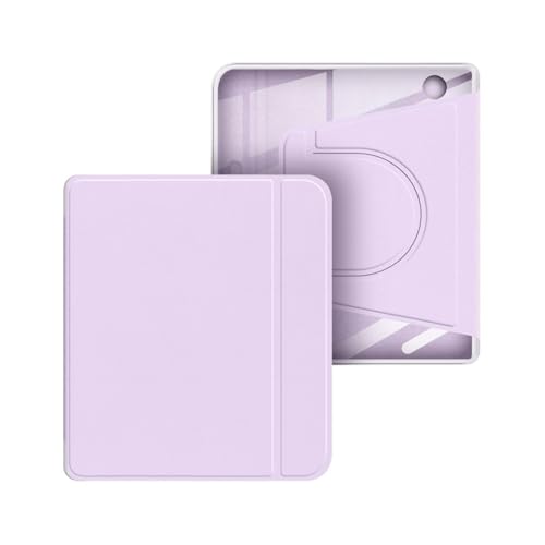 Kobo Libra Colour N428向けの7インチ対応ケース。マグネット式スタンドカバーで自動ウェイク/スリープ機能付き。360°回転が可能で、軽紫色。