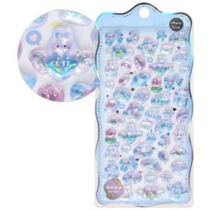 3D 立体ステッカー オーロラ ホログラム 彩虹色 硬質 浮き彫り 透明シール 動物 キャラクター かわいい デコレーション 手帳 ノート スマホケース 文房具 装飾 女の子向け プレゼント (BGG-05)