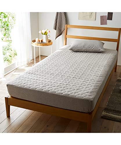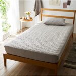 ニッセンの敷きパッドボックスシーツ一体型は、綿100%の天竺ニット素材で、オールシーズン使用可能。シングルサイズのライトグレージュです。快適な睡眠をサポートします。