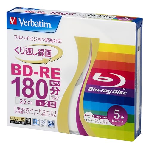 バーベイタムジャパンのBD-RE VBE130NP5V1は、片面1層で1-2倍速のくり返し録画用Blu-rayディスクです。5枚パックで、データの書き換えが可能です。