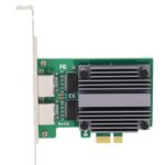 I226 Vチップセットの2.5G PCIeネットワークカード。高速100/1000/2500Mbps、2ポート対応。ロープロファイル、アルミヒートシンク、金メッキ仕様。