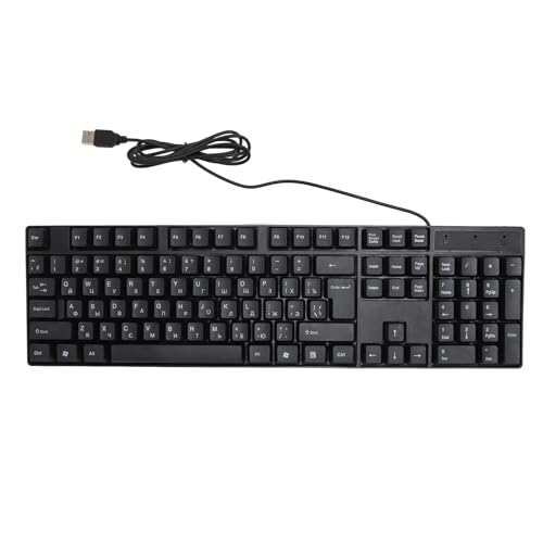 K1800有線USBキーボード、104キーの多言語対応。ロシア語、スペイン語、フランス語選択可能。プラグアンドプレイ対応で、ホームオフィスや仕事に最適。