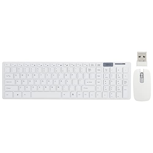 人間工学に基づいた101キーのワイヤレスキーボードとマウスのセット。フィルム付きで、全てのスマートフォン、タブレット、ノートブックに対応(白色)。