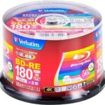 Verbatim製のBD-RE 25GBは、くり返し録画用のブルーレイディスクで、1-2倍速対応。インクジェットプリンタに対応しており、ホワイトの片面1層デザイン。50枚+3枚の増量パック。