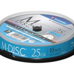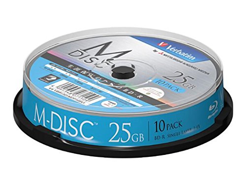 Verbatimのデータ用ブルーレイM-DISCは、1回記録型の25GB容量を持つスピンドルパックで、10枚入り。データ保存に最適で、高い耐久性を誇り、長期保存に適しています。