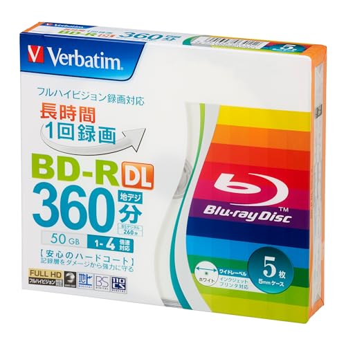 三菱ケミカルメディアのVerbatim 1回録画用BD-R VBR260YP5V1は、片面2層で1-4倍速対応のディスクです。5枚入りで、大容量データの保存や映像コンテンツの制作に最適です。