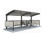 四国化成サイクルポートV-Rクローズタイプ連棟用基本セット(2連棟セット)。積雪対応100cm、標準高。屋根材はアルミ押出形材、色はブラックつや消し/ステンカラーです。