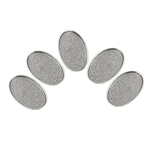 5個セットのアルミ合金製ジュエリーメイキング用トレイです。ブローチ用のベゼルやはめ込みパーツとして使用可能。レジン細工やフォトジュエリーに最適な手芸素材で、無塗装仕上げのアンティークシルバーで仕上げられています。