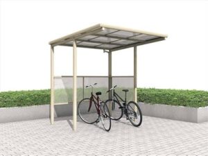 四国化成のサイクルポート V-R オープンタイプは、連棟用基本セット(2連棟セット)で、積雪100cm対応。屋根材はアルミ樹脂複合板を使用し、色はブラックつや消しとステンカラーがあります。