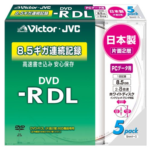Victor データ用DVD-R 片面2層 8倍速 8.5GB ホワイトプリンタブル 5枚 日本製 VD-R85CW5の製品情報