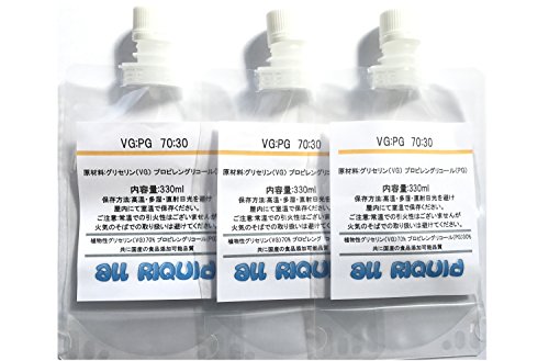 国産のVG70PG30ベースリキッド3pcsセット。植物性グリセリンとプロピレングリコールを使用し、330mlの食添品品質。安心して使える高品質なリキッドです。