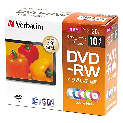 Verbatim バーベイタム くり返し録画用 DVD-RW CPRM 120分 10枚 5㎜プラケース 5色カラーミックス 片面1層 1-2倍速 3年保証 VHW12NX10D1-B