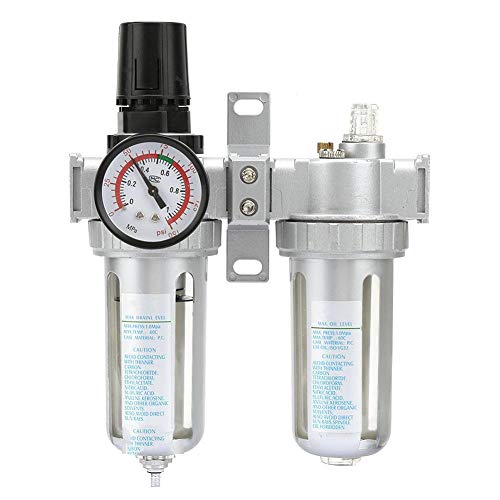 圧縮エアフィルターレギュレータルブリケーターコンボは、1/4″、3/8″、1/2″に対応し、空気圧の管理や水・オイルのトラップが可能です。ゲージ付きで精度も向上しています。
