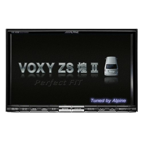 アルパイン ヴォクシーZS “煌II” 専用の8型WVGA液晶ナビ。地上デジタルTV、DVD-V/CD、Bluetooth、USB、SD対応。AV一体型で32GB内蔵。機能性と視認性に優れたモデルです。