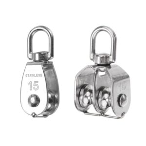 304 ステンレス鋼プーリー、二重 滑車 ローププーリー 滑車ブロック リフティングクレーン回転フック 吊りワイヤー 牽引ダブルホイール ステンレス製 耐荷重 250KG 360度回転 M32 室内 屋外 建設工事 貨物輸送用 2個入り