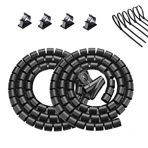 VIWIEUのケーブルコードカバーは、内経22mm、長さ1.5mで、防水スパイラルチューブと繰り返し利用可能なスリーブ。犬猫の噛む防止にも最適。2個の配線カバー、4枚クリップ、6本タイ付き電源タップも完備。