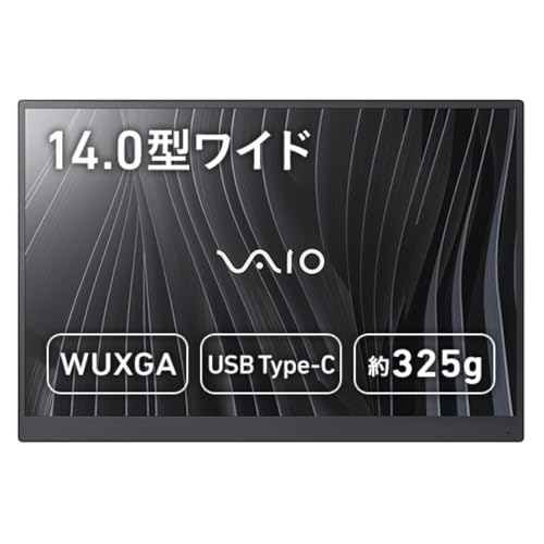 VAIOの14.0インチモバイルディスプレイは、WUXGA解像度(16:10)で軽量325g、薄型デザインで持ち運びに便利。USB-C接続対応で、VAIO Vision+機能を搭載。