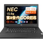 NECノートパソコンVKM16/VKT16は、15.6型ディスプレイ、Core i5-8265U(最大3.9GHz)、16GBメモリ、1TB SSD、Windows 11 Pro、MS Office 2019搭載。Wi-Fi、Bluetooth、HDMI、Type-C接続、テンキー付。