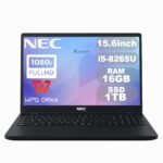 NEC VersaPro VX-5は、第8世代Core i5-8265Uを搭載した15.6型ノートパソコン。メモリー16GB、1TB SSD、HD解像度 (1366×768)で、WPS Office、DVDドライブ、HDMI、Type-C、USB3.0ポート搭載。テンキー付きの整備済み品。