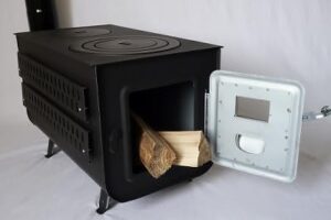 VASTLANDアイロンストーブはキャンプに最適なストーブで、耐熱ガラス窓と鉄製天板を備えています。収納袋と替え芯2枚付きで便利に使えます。