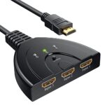 HDMI切替器 3入力1出力は、3つのHDMIデバイスを1つのディスプレイに接続可能。1080p解像度対応で高画質、簡単な切替え操作が特徴です。コンパクト設計で設置も楽々。