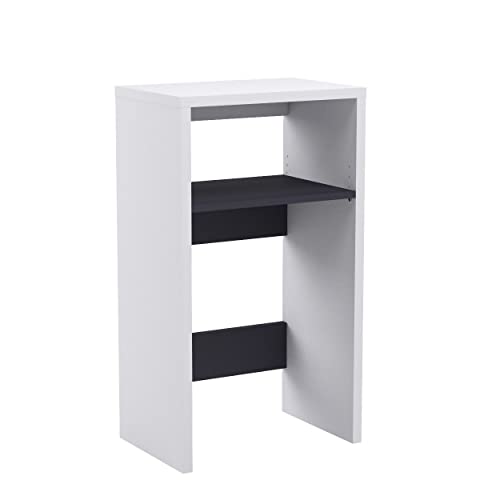白井産業のVRD-1060WHは、幅59.2×高さ104.8×奥行39.6cmのレンジ台。耐荷重20kgで安心、移動可能な中棚付き。ホワイトとブラックのモダンなツートンカラーで、キッチン家電をすっきり収納できます。
