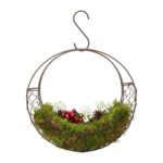 冬の花と鳥のための巣作り材料ハンガー。月形リースフレームや針金ハミングバード巣材ケージが付属。リビングルームや屋外、バルコニー、ガーデン、パティオ、テラス、ポーチで使用可能。