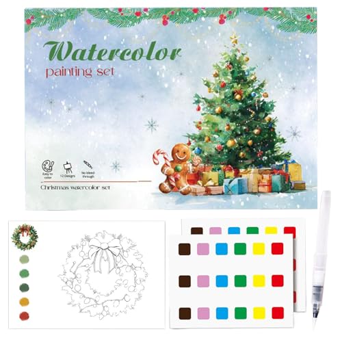 初心者向け水彩ワークブック。20種類のイラストを含む、大人向けのクリスマス特集。自宅や旅行、仕事の合間に楽しめるリラックスアイテムです。