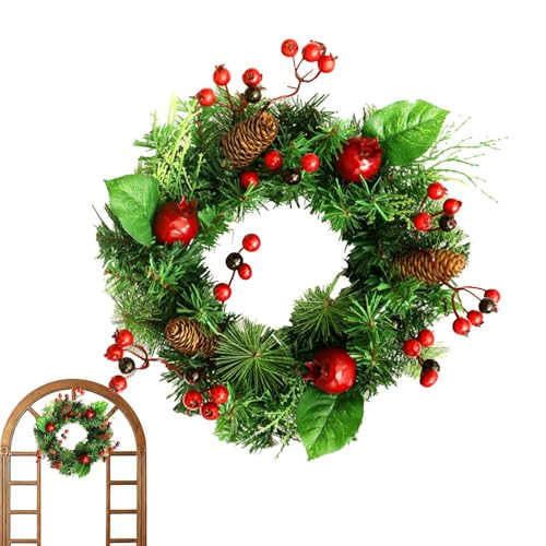 玄関ドア用のクリスマスリース。人工松葉とレッドベリーを使用した松ぼっくりリース。冬のクリスマスパーティーや季節の装飾に最適です。