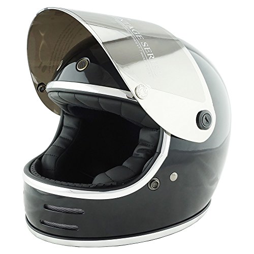NEO VINTAGEのVT-9フルフェイスバイクヘルメットは、SG規格品で、ブラック×シルバーミラーシールドを採用。サイズはM(57-58cm)で、レトロフューチャーなデザインが特徴です。