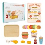 木製ごっこ遊びキッチンセット – ファーストフードクッキングトイ、ハンバーガーフライドポテト、チキンドリンク、滑らかなエッジのリアルな木製プレイアクセサリー | 男の子と女の子向けの教育レストランおもちゃセットの高価買取