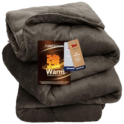 Colorsroomのセミダブル掛け布団は、シンサレートを使用し羽毛より暖かいです。4層構造で超極細フランネルを採用し、冬でもあたたか。軽量で洗え、抗菌防臭、防ダニ機能も。サイズは約170×210cm、無地のアッシュグレーが特長です。