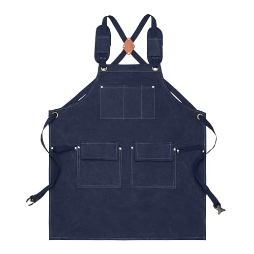 Fonneyのワークショップエプロンは調整可能で防水、重作業用のワックスキャンバス素材を使用。クロスバックストラップ付きで、キッチン料理や木工に最適な男女兼用のアクセサリーです。
